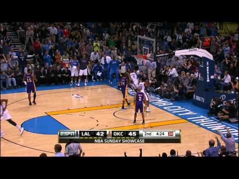 Russell Westbrook comes up with the crafty steal and behind-the-back dribble against Kobe Bryant and then ends the break with a left-handed slam that he later admitted was the first he had done during an NBA game.